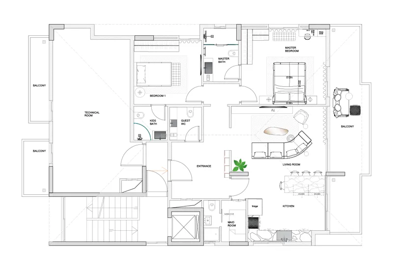 The mid-floor apartments are designed with a refined, symmetrical layout that maximizes comfort, privacy, and natural light. Every area is thoughtfully planned to create a spacious, functional home with premium finishing.